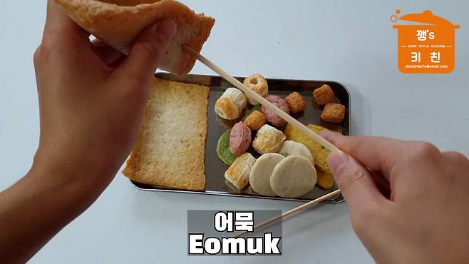 꼬치에 어묵을 꼬불꼬불 꽂아줍니다
