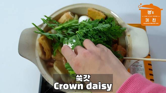12. 어묵이 적당히 퍼지면 쑥갓 넣기