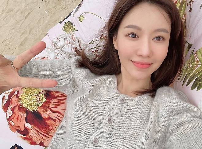 라이트 그레이 컬러의 니트 카디건을 착용해 따뜻하고 부드러운 이미지를 연출했습니다.