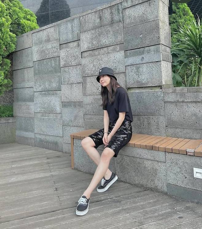 블랙 스니커즈로 활동성과 스타일을 동시에 잡은 완성도 높은 데일리 스타일을 보여줬습니다.