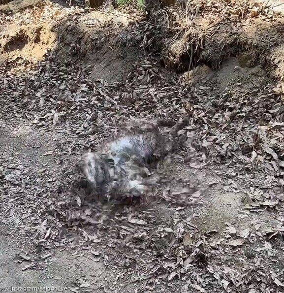 영상에는 반려견 '살구'가 등장하는데. 낙엽이 가득한 바닥에 철퍼덕 누워버리는 녀석. 뭐가 그리 신났는지 배를 보이며 이리저리 온몸을 땅바닥에 비비는 모습이다.
