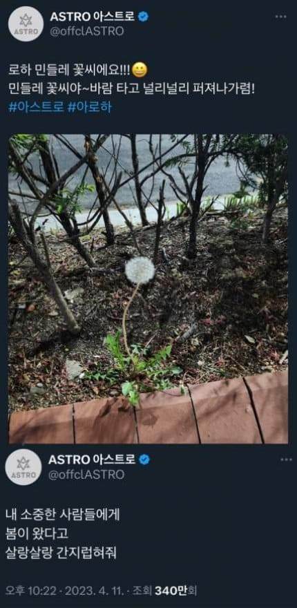 그리고 문빈의 사망소식이 들리기 약 1주전 아스트로 트위터에서 문빈이 찍은 민들레 홑씨 사진이 올라왔는데 민들레 홑씨의 꽃말은 '이별'이었습니다.