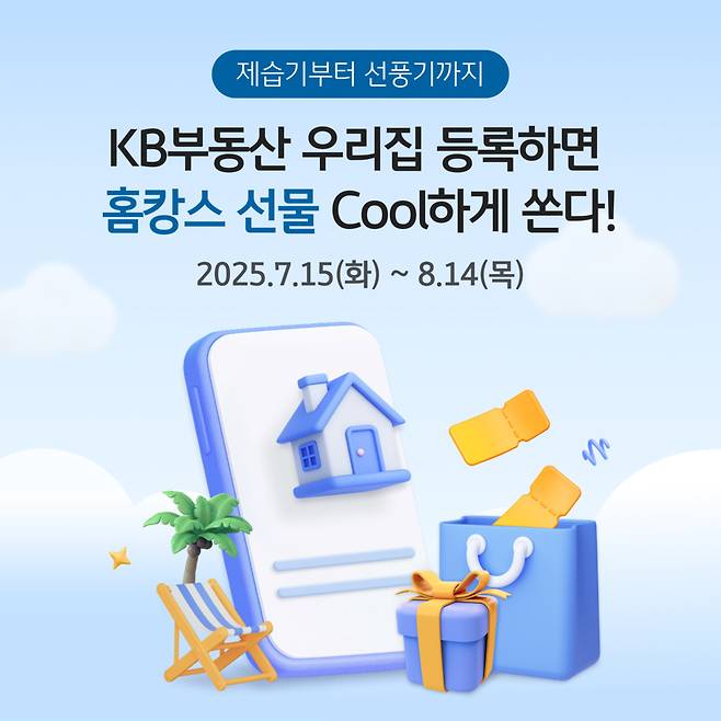 오는 8월 14일까지 KB부동산에서 '우리집' 서비스를 등록하고 '홈캉스 선물 선택하기'에서 받고 싶은 선물을 선택해 응모하면 된다.