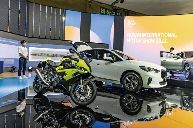 수입차 브랜드 중 유일하게 참가한 BMW그룹코리아는 BMW와 미니, 그리고 롤스로이스를 개별 부스로 참가했다. 뉴 2시리즈 액티브 투어러를 공개했다. 미니는 JCW애니버서리 에디션과 전기 차량인 미니 일렉트릭 페이스세터를 공개했다. 미니 일렉트릭 페이스세터는 포뮬라E세이프티카로 데뷔한 고성능 전기차로 JCW에서 영감을 받았다. 또한 BMW 모토라드는 M 브랜드 설립 50주년을 기념하는 M 1000 RR을 아시아 최초로 선보여 눈길을 끌었다.
