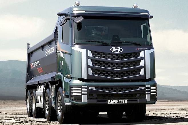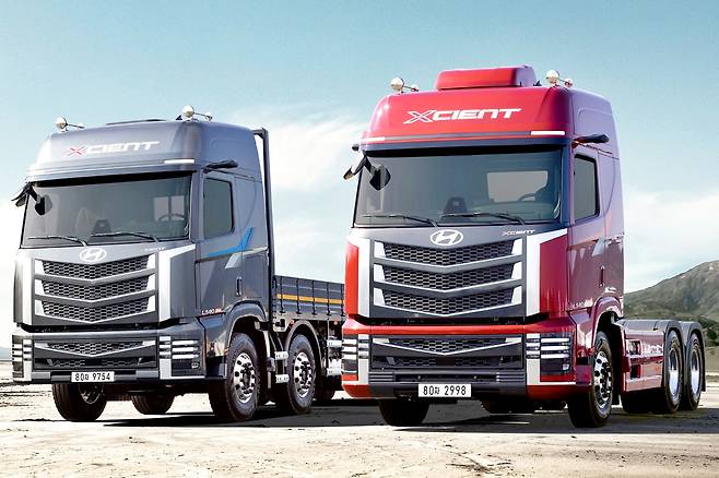 현대차는 지난 11일 엑시언트 프로의 페이스리프트 모델인 '더 뉴 엑시언트'를 출시했다. 이번 신차는 큐브 형태의 메시 그래픽이 특징인 V형 라디에이터 그릴, 수직 크롬 가니시로 한층 웅장해진 전면부 이미지가 눈길을 끈다. 풀 LED 헤드램프는 블록 모양으로 간결하면서도 세련된 모습을 완성했다.