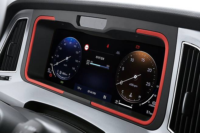 디지털 계기판은 기존 7인치에서 12.3인치로 대폭 확장돼 마침내 대형트럭에 걸맞은 면모를 갖췄다. 감쇠력을 높인 쇽업소버 적용으로 승차감이 더욱 개선됐고, 스티어링 휠 조향력은 고객 선호에 따라 무게감을 조절할 수 있다. 같은 12.3인치 크기의 ccNC 기반 인포테인먼트 시스템은 무선 소프트웨어 업데이트 기능을 지원한다.