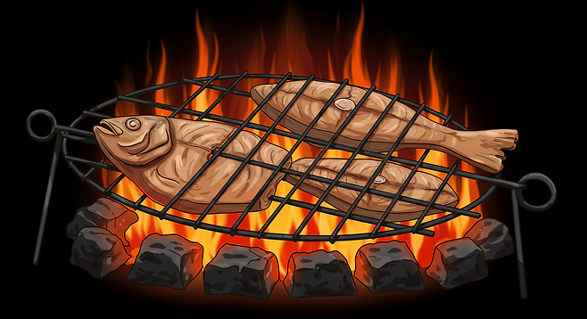 불에 직접 구운 고기와 생선