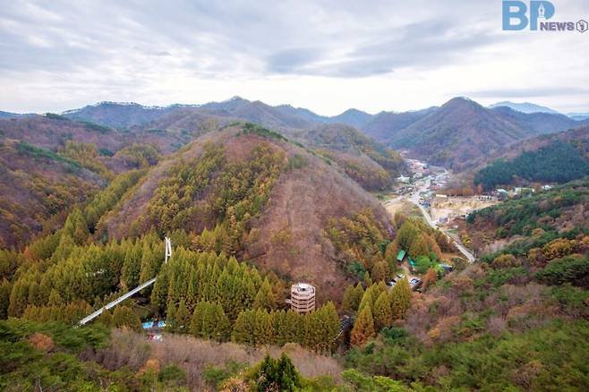 이 자연의 중심에는 숲 속 체험의 핵심이라 할 수 있는 출렁다리가 위치해 있다.
