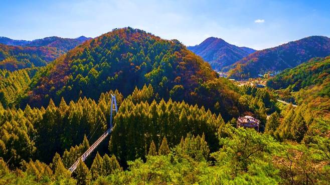 이 자연의 중심에는 숲 속 체험의 핵심이라 할 수 있는 출렁다리가 위치해 있다.