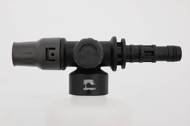 폼건 노즐은 카샴푸 등을 담아서 사용하면 거품을 분사할 수 있다. 폼건 노즐에는 레버가 부착되어 있어서 폼의 분사 정도를 조절할 수 있다.