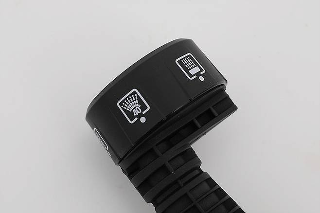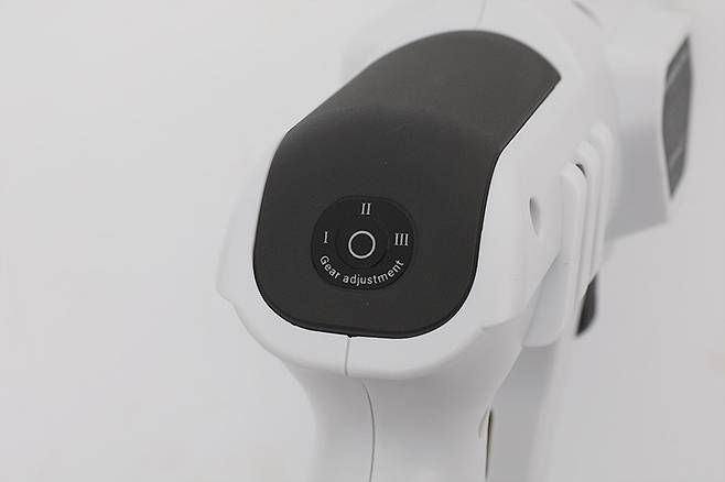 본체의 손잡이 위를 뒤쪽에서 바라보면 기어 조절 버튼이 있다. 기어 조절은 3단계로 가능하며, 설정된 단계가 표시되지는 않기 때문에 직접 누르면서 확인해야 한다.