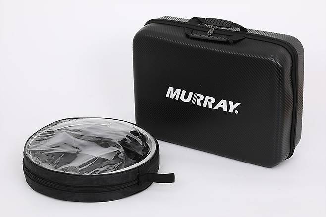 머레이 휴대용 충전식 고압 워터건 WT-GUN은 검은색 박스에 담겨 있다. 박스에는 손잡이가 있어서 휴대가 간편하며, 박스 앞면에는 제품 이미지가 인쇄되어 있어서 대략의 디자인을 가늠하기는 어렵지 않다.