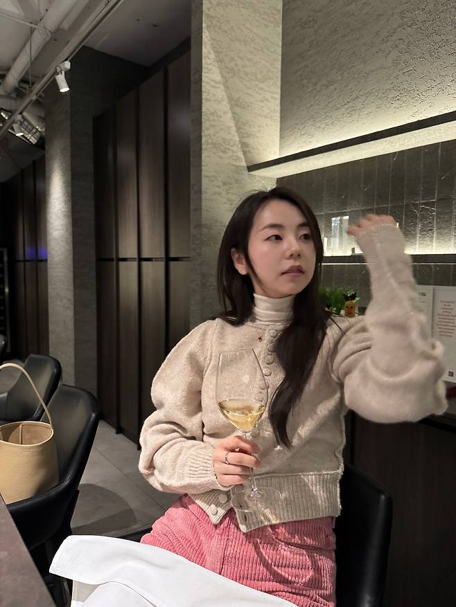 따뜻한 베이지 톤의 가디건과 어우러지는 은은한 초코 브라운 컬러는 차가운 겨울 공기를 녹이는 듯한 부드러운 인상을 완성하며, 피부톤을 한층 더 맑고 투명하게 부각시킵니다.