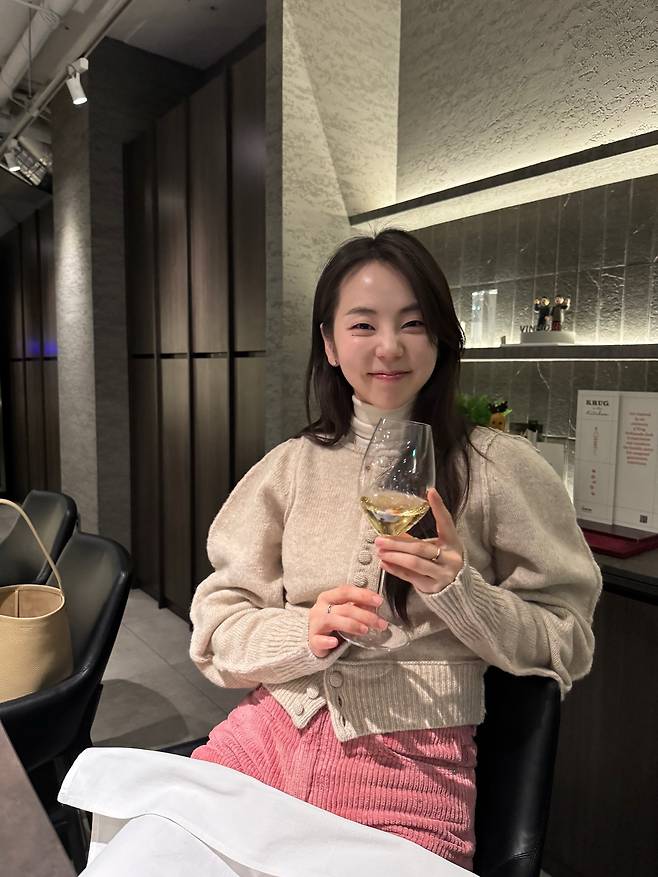 과한 세팅보다는 모발의 흐름을 자연스럽게 살린 스타일링이 그녀의 깨끗한 페이스 라인과 조화를 이루죠.