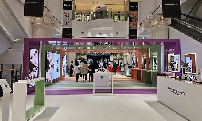▲ 신세계백화점 = 오는 16일까지 강남점 1층 더스테이지에서 '샤넬 2025 봄-여름 메이크업 컬렉션' 메가 포디움 이벤트를 한다. 대표 상품으로 쥬 드 뤼미에르 일루미네이팅 파우더 팔레트인 '쥬드 뤼미에르', '뉴 루쥬 코코 밤 샤인', 'N°1 드 샤넬 레드 까멜리아 세럼' 등이 있다.