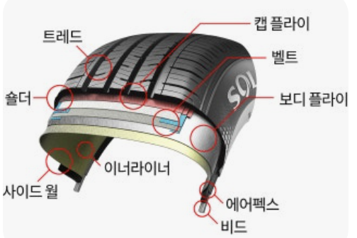 사이드월의 역할: 타이어의 사이드월은, 딱딱한 바닥면과는 달리, 주행 중 차량의 무게를 지탱하고 노면의 충격을 흡수하기 위해 수없이 구부러졌다 펴졌다를 반복하는, 아주 유연하고 부드러운 부분입니다.