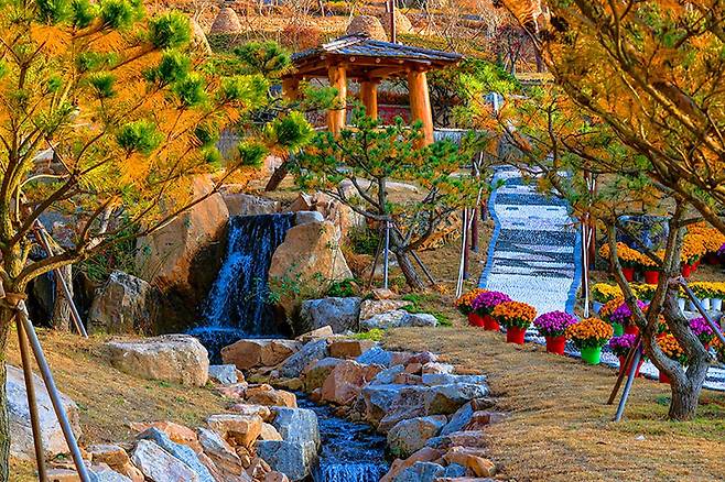 멋진 경치를 감상하며 다양한 테마의 정원에서 조형물을 둘러보고 스탬프 투어도 참여할 수 있습니다.