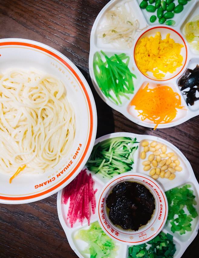 우리나라 짜장면의 가장 중요한 맛이 단맛이라면 베이징 자장면은 짠맛을 강조한다. 베이징 자장면은 춘장을 제외한 모든 재료에 기름이 들어가지 않아 오히려 건강식 느낌이 나기도 한다. 자장면으로 베이징에서 가장 유명한 음식점이 바로 '팡주안창 69호'다. 69개의 식당이 있다는 의미가 아니라 이름 자체가 그렇다.
