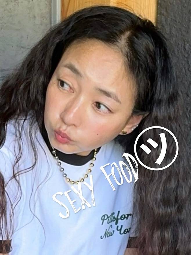 옆선에 걸터앉은 듯한 포즈에서도 꾸밈없는 자유로움이 전해졌고, 이마를 드러낸 자연스러운 웨이브 헤어가 전체적인 분위기를 부드럽게 만들어주었죠.