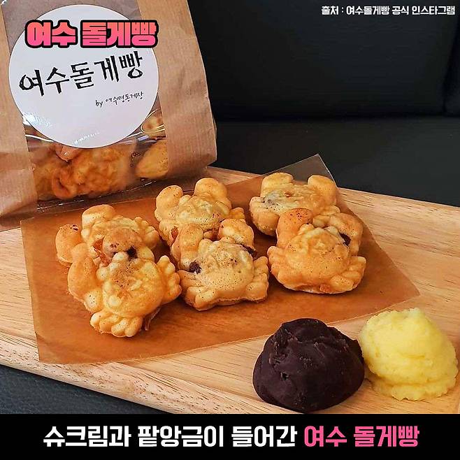 원조는 여수에 딱 한 곳! 명동 게장 앞 ‘여수 돌게빵’에서 살 수 있어요. 귀여운 돌게 모양이라는 것만 빼면 붕어빵과 비슷한 듯해요. 약간 붕어빵보다는 반죽에 버터 맛이 많이 나는 고급스러운 맛이에요.