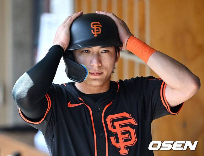 경기앞서 샌프란시스코 자이언츠 이정후가 새롭게 주문한 헬멧을 써보고 있다. 2024.03.05 /sunday@osen.co.kr
