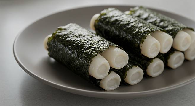 먹기 좋은 크기로 자른 가래떡에 조미김을 둘러 주면 김 특유의 짭조롬함과 떡의 고소하고 담백한 맛이 어우러져 특색 있는 가래떡 간식이 완성된다.