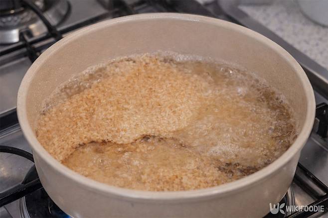 물이 팔팔 끓기 시작하면 불을 중간 세기로 줄이고, 뚜껑을 연 상태에서 약 10분간 더 끓여 누룽지를 부드럽게 불린다. 이때 뚜껑을 닫으면 거품이 올라와 넘칠 수 있으니 주의해야 한다.