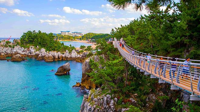 출렁다리 위에서 잠시 멈춰 서서 바다를 바라보면, 걷기만 했을 뿐인데도 마음이 정화되는 듯한 기분이 든다.