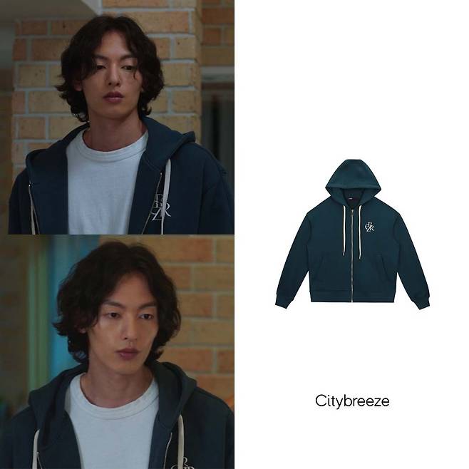 주어진이 착용한 제품은 '시티브리즈'의 후드 집업입니다.