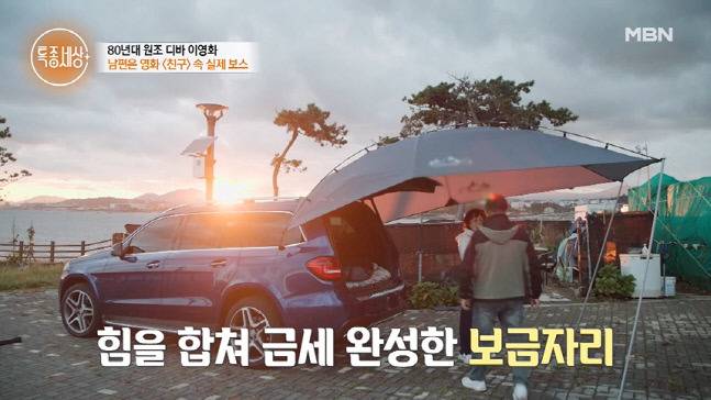 일을 마친 부부는 근처 바닷가에서 차박을 했습니다. 차 뒤쪽에 공간을 만들어 이불을 깔고 차양막을 쳤습니다. 이영화는 “잘 때마다 밖에 보이는 풍경은 매일 다르고 새롭다. 오늘은 어떤 모습이 나타날지”라며 기대했습니다.