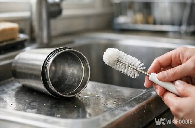 미끈한 느낌이 있거나 냄새가 날 때에는 식초를 활용하는 방식이 도움이 된다. 물과 식초를 섞어 텀블러 안에 붓고 잠시 두면 내부에 남은 막이 느슨해진다. 이 상태에서 병 솔로 벽면을 문지르면 잔여물이 쉽게 떨어진다. 식초 사용 후에는 반드시 물로 충분히 헹군다. 식초 냄새가 남지 않도록 헹굼 횟수를 늘리는 것이 좋다.