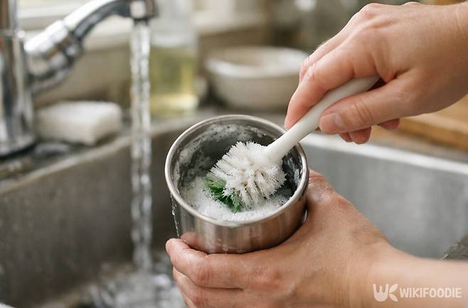 텀블러 본체 세척은 상태에 따라 방법을 나누는 편이 낫다. 눈에 띄는 오염이나 냄새가 없을 때는 주방 세제만으로도 충분하다. 미지근한 물을 텀블러 안에 받아 세제를 소량 넣는다. 이후 병 솔로 내부 벽면을 따라 천천히 문지른다. 바닥과 입구 안쪽처럼 손이 잘 닿지 않는 부분을 중심으로 닦는다. 세제를 넣고 흔드는 방식보다는 솔로 직접 문지르는 쪽이 효과적이다. 세척 후에는 거품이 남지 않도록 여러 번 헹군다.