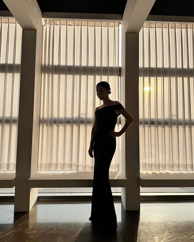 사진 속 이지혜는 블랙 오프숄더 드레스를 입고 긴 기럭지와 날씬한 몸매를 자랑하며 우아미를 뽐냈다.