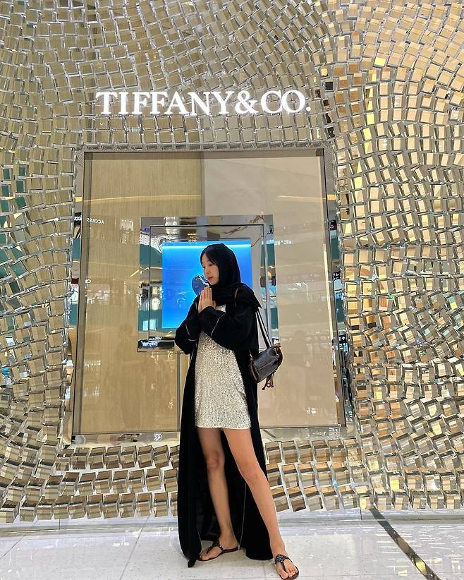 지난 14일 이지혜는 자신의 인스타그램에 “어딘지 힌트 다 나왔지. 아랍미녀. 부자나라. 중동국가. 기름. 아바야. 티파니=고가. 이래도 모르겠어?”라는 글과 함께 사진 여러 장을 게재했다.