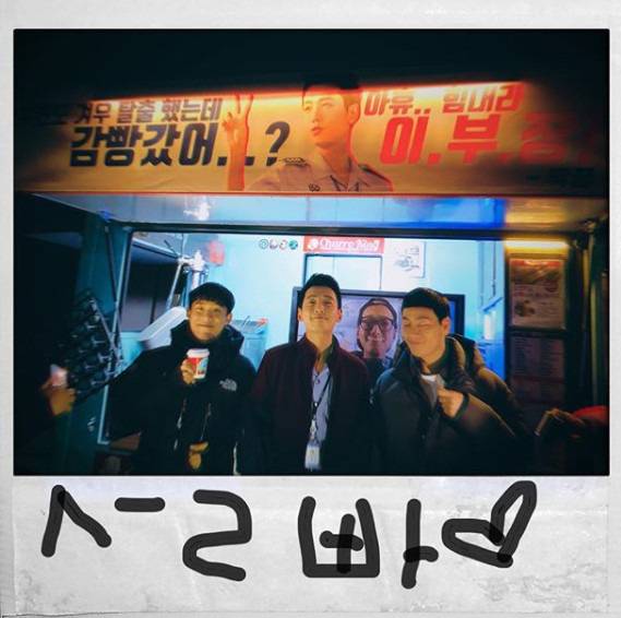 글과 함께 공개된 사진에는 정경호가 tvN '슬기로운 감빵생활'에서 호흡을 맞추고 있는 박해수, 김성철과 함께 커피차 앞에서 포즈를 취하고 있는 모습이 담겼다.