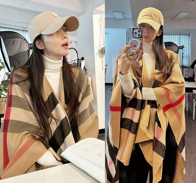 공개한 사진에서 박솔미는 베이지 볼캡에 체크 울 케이프를 걸친 외출룩으로 따뜻하면서도 감각적인 겨울 외출 스타일을 선보였다.