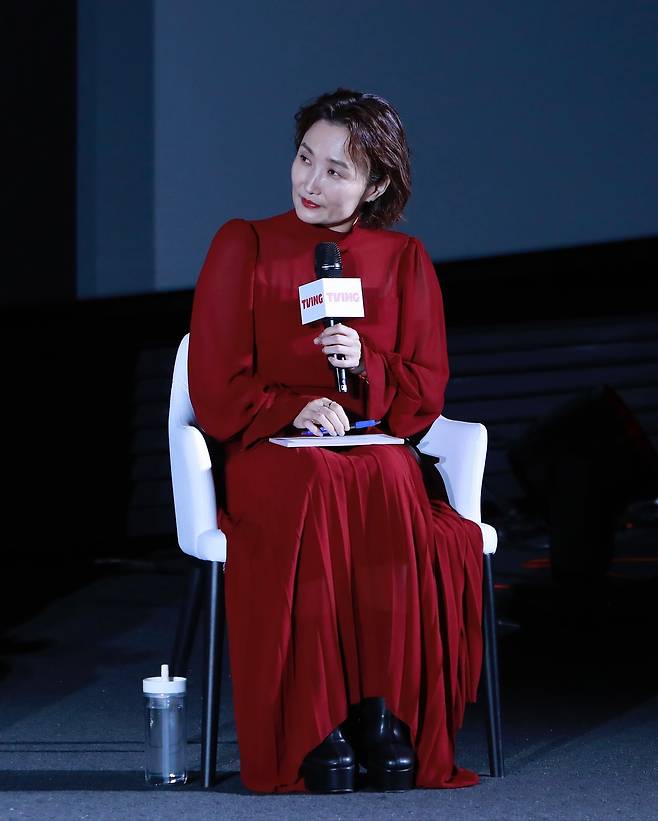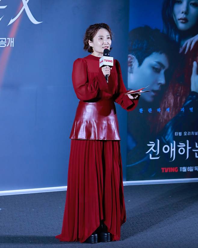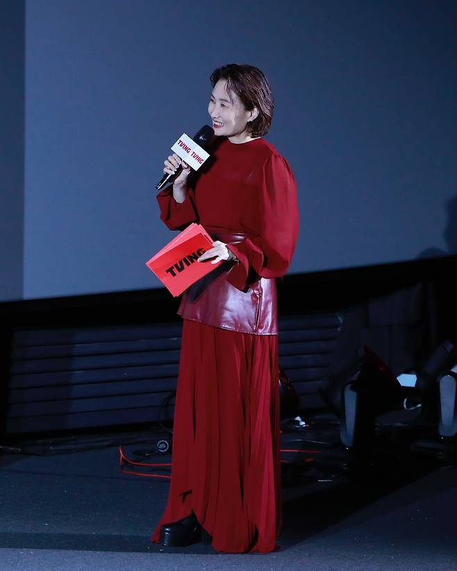 박경림은 이번 행사에서 강렬한 레드 드레스로 완벽한 무대 장악력을 보여줬어요.