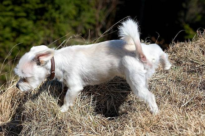 강아지는 마킹 전 킁킁거리며 냄새를 맡는 행동을 합니다.