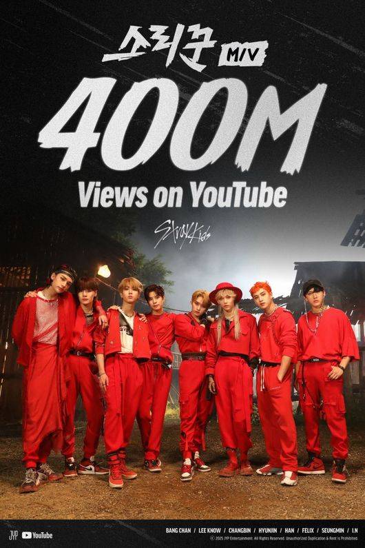 이로써 스트레이 키즈는 '神메뉴'(신메뉴)에 이어 '소리꾼'까지 두 편의 4억 뷰 이상 뮤직비디오를 보유하게 됐다.
