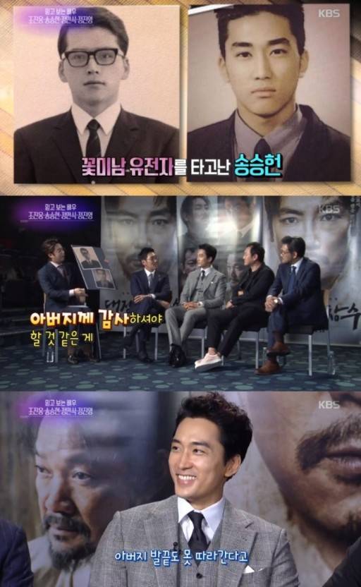 이어 송승헌 부친의 젊은 시절 사진이 공개됐고 배우 현빈을 떠올리게 하는 조각 외모가 보는 이들의 시선을 사로잡았습니다. 이국적인 이목구비에 김구라가 "아버님이 영화 '킹스맨'에 나오는 젊은 배우 같다. 너무 잘생기셨다. 한국 분 같지 않다"라고 하자 송승헌은 "그런 얘기를 많이 듣는다. 그런데 토종 한국 분이다"라고 답했습니다.