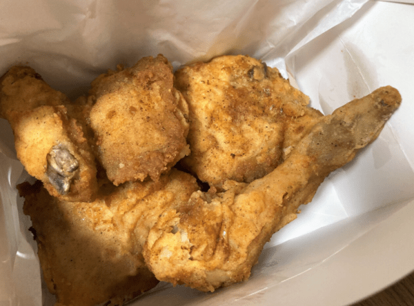 치킨을 보관할 때는 겹치지 않게, 한 조각씩 간격을 두는 것이 좋다.