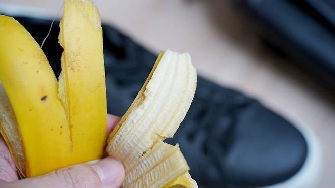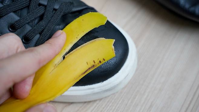 바나나 껍질 안쪽을 보게 되면 하얀색 줄들이 가득한데요. 이 안에는 칼륨, 질소, 황, 카르복실 등의 성분이 있다고 해요. 이 성분들은 가죽에 바를 경우 흠이 생긴 부분을 줄여 주는 동시에 윤을 내주게 된다고 합니다.