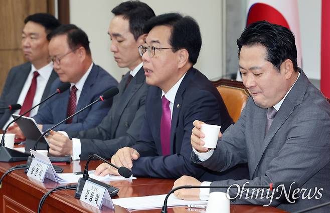 김재원 최고위원은 "특검이 권력자의 충견 노릇을 하면서 사실을 왜곡해서 사건을 조작하고 그런 내용으로 기소를 해서 정청래 대표를 위시로 하는 민주당의 요구에 충실하게 복무하려는 것"이라며 "우리 당의 원내대표실 압수수색 쇼는 바로 그러한 행위의 절정에 있다"라고 날을 세웠다. "모든 음모를 분쇄하기 위해서 우리당은 500만 당원과 함께 굳건하게 저항할 것"이라고도 덧붙였다.