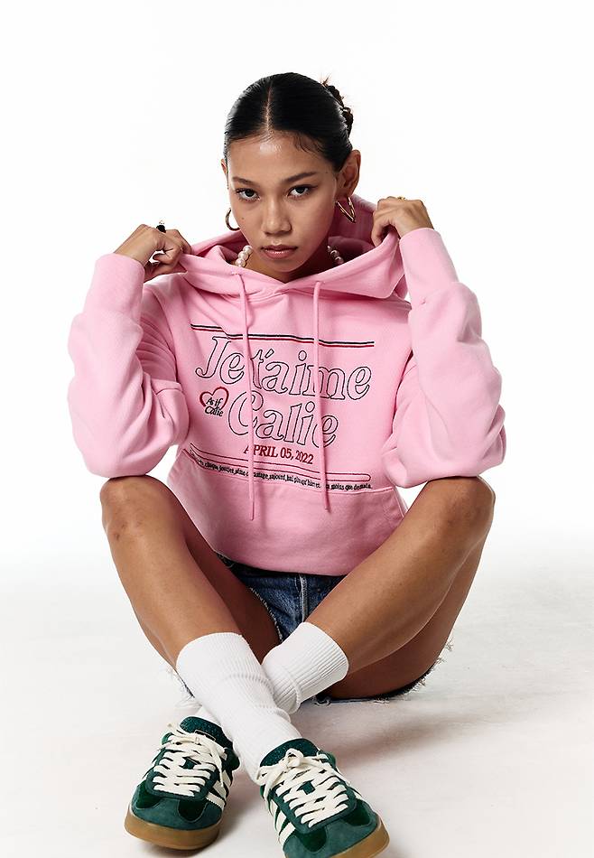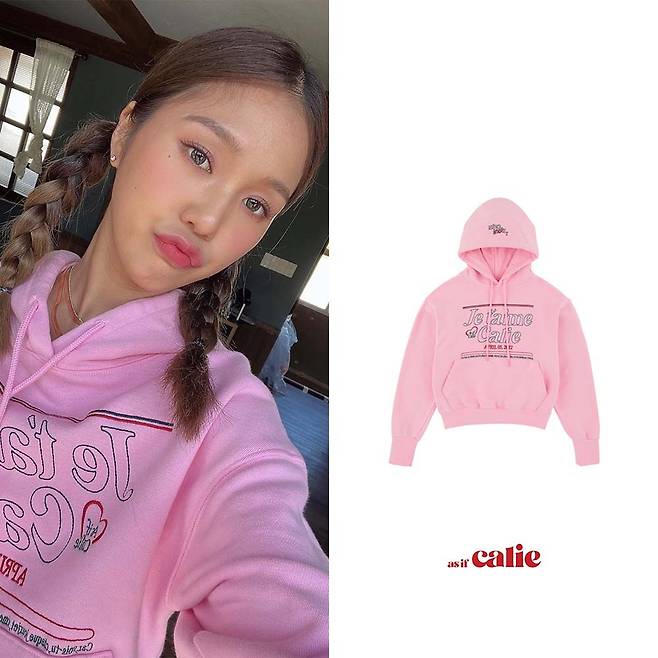 미미가 착용한 제품은 '애즈이프캘리'의 후디입니다.