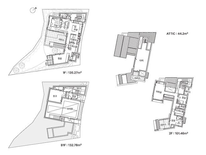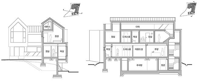 비정형의 대지와 야산의 위치를 최대한으로 활용한 실과 창의 계획