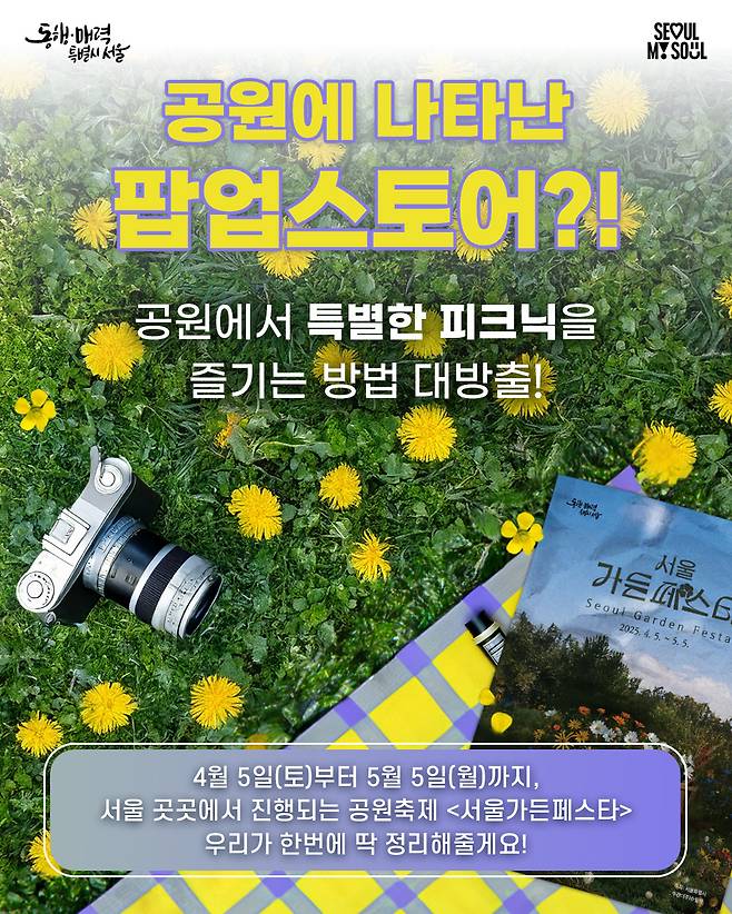서울 곳곳의 공원에서 열리는 <서울가든페스타>가 2025년 4월 5일부터 5월 5일까지 개최된다.