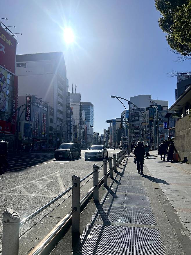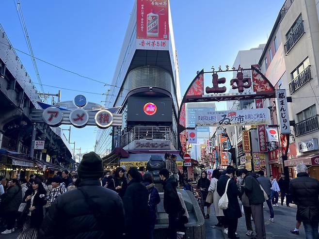 우에노역은 엄청난 인파로 북적북적했다. 하긴 다양한 노선이 걸친 역인 데다 오늘은 1월 1일이니 당연한 풍경이다. 역사 밖으로 나오자 구름 한 점 없이 푸른 하늘에 햇살이 쨍쨍했고, 그 아래 대도시 풍경이 펼쳐졌다. 대마도와 후쿠오카에 얼마나 있었다고, 모든 건물이 다 높고 복잡해 보이는 게 역시 도쿄구나 싶었다.