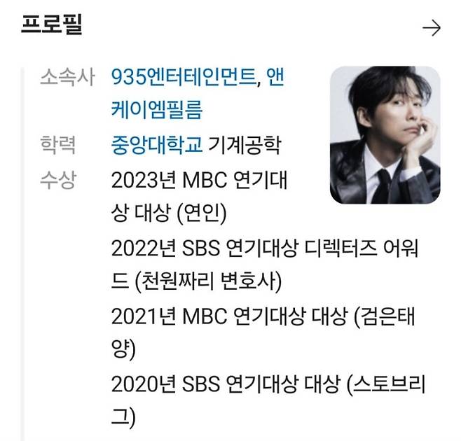 • 수상 내역: MBC 연기대상 대상