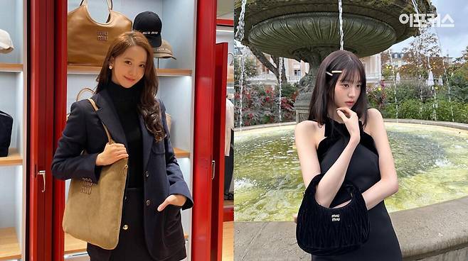 바로 소녀시대 윤아와 아이브 장원영인데요. 이들은 각 세대를 대표하는 아이돌, 그리고 미녀로 손꼽히는데, 둘 다 미우미우의 앰버서더로 활발한 활동을 펼치고 있습니다.