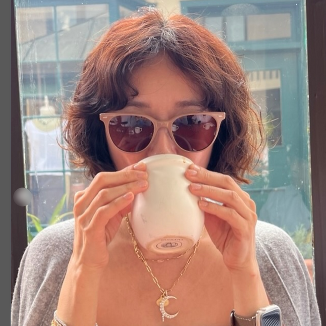단정한 단발 헤어스타일과 크기가 큰 프레임의 안경은 그녀의 얼굴을 한층 더 부드럽게 보이게 했고, 전체적으로 힘을 뺀 스타일링 속에서도 연예인 특유의 아우라가 자연스럽게 묻어났다.